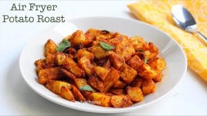 Air fryer potato roast/ Roasted potatoes is a crispy, spicy and delicious South Indian style roast prepared in just 10 minutes by Air frying spice masala coated potato cubes to perfection. It was a really busy day and I wanted to make something real quick a spicy side, so thought of potato roast but wanted it to be done quickly without much of hassle so chose to do it in Air fryer. I was very skeptical for the first 5 minutes after landing the potato cubes in the Air fryer and to my surprise it turned out the way we usually make potato roast with Iron kadai.