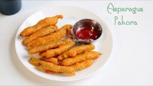 Asparagus meaning a shoot or sprout is a nutrient packed green vegetable belonging to lily family. It is a very good source of fiber and has impressive levels of micronutrients like calcium, iron, magnesium, phosphorus, potassium, zinc, vitamin A, B6, C, E and K. So adding this miracle veggie to our diet makes us more healthy. Since it is rainy season I thought to share a easy pakora / bajji recipe with asparagus instead of showing basic pasta/ stir fry recipe. Just made basic pakora/ bajji batter, dipped asparagus spears and fried in oil. Voila simple yet yummy evening snack is ready in no time. Serve these pakora hot with ketchup and they will taste amazing! So let’s get to the making!