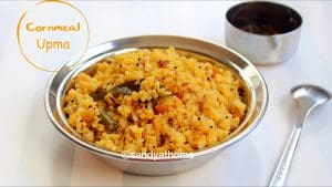 - After 20 minutes when all the water us drained and when cornmeal looks cooked switch off the flame. If your cornmeal is not cooked sprinkle some water and cook for some more time with lid on. Initially the upma will look like sooji upma after some time you can see granules of cornmeal making it look dry and appetizing. Serve the upma with any pickle of your choice.