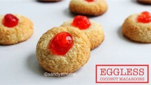 - Arrange it the baking tray with parchment paper/ wax paper. Repeat till all the cookie dough is over.Now place cherries on top of each macaroon.