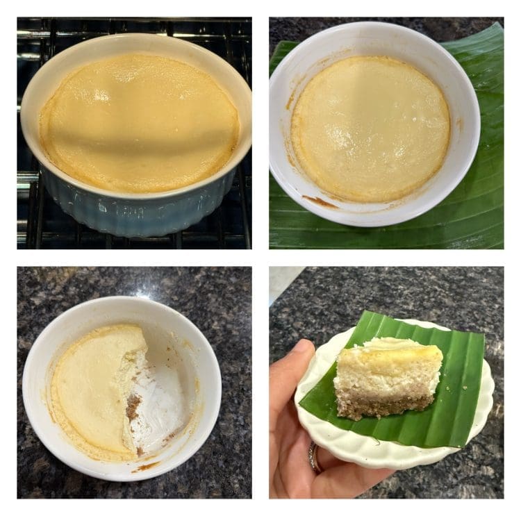 - Serve chilled, straight from the ramekin or slice onto a banana leaf or ceramic plate.