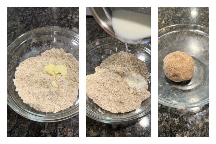 Pour in a little milk gradually and knead to form a soft, smooth dough ball.