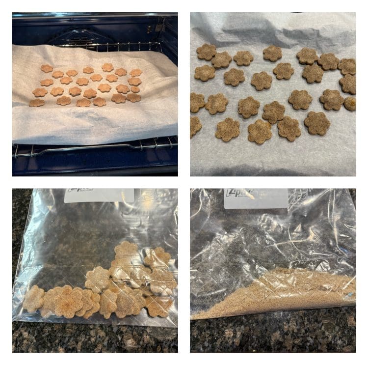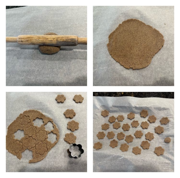 Roll out the dough thinly on parchment. Cut into shapes using your favorite cookie cutter. Transfer to a lined baking tray.