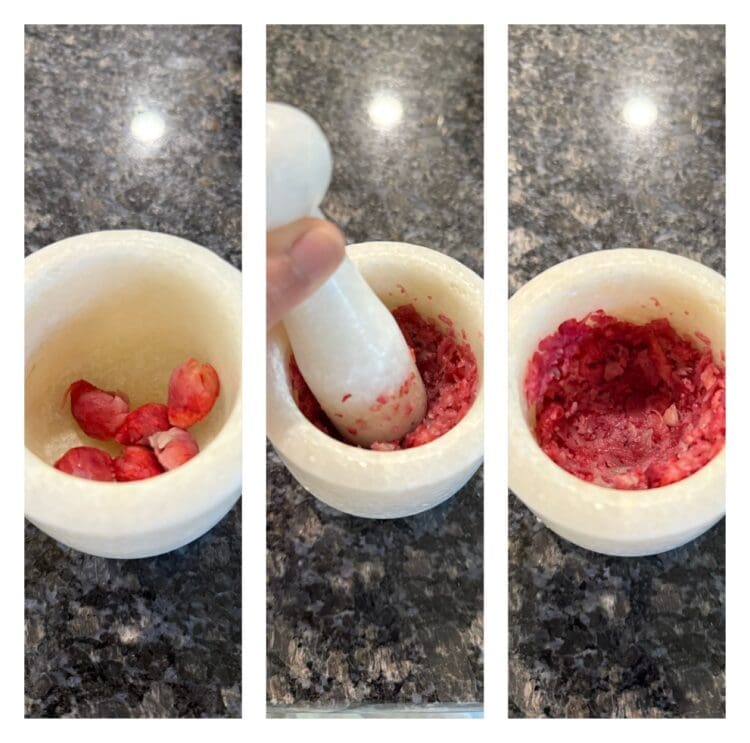 - Use only fully ripe konakka arils — pink or white in color. Unripe green ones can be too tart and fibrous.