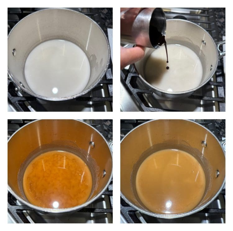 Add 3 to 4 tablespoon hot coffee decoction to the warm millet milk.