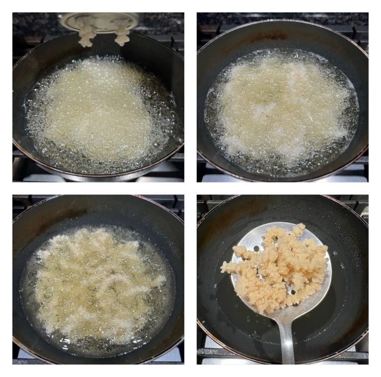Fry until the bubbles subside and the murukku turns golden and crisp.