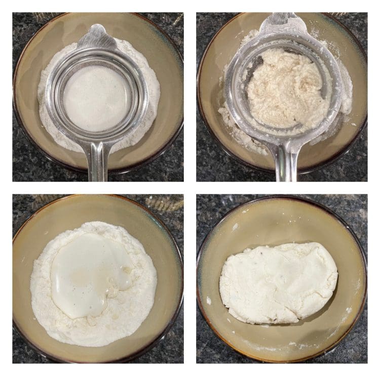 Add the fresh cashew paste to the flour mixture. Sprinkle a little water and knead into a soft, smooth dough — not sticky and not too dry.
