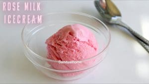 - When you see soft peaks add rose syrup and blend it into the whipped cream gently so that you don’t loose the aeration/ fluffiness created. When everything looks combined transfer the cream mixture to a freezer safe bowl and freeze it for 5 hours or overnight. (You could place cling wrap/ parchment paper over the cream before putting on the cap/ lid. My friends suggested that this will prevent in forming ice crystals, but I never came across that issue so I never did that)Make sure to leave it undisturbed.