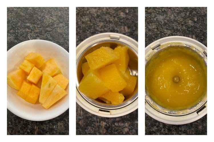 Peel and cube the pumpkin, steam until soft (10 minutes), then blend into a silky smooth purée in a blender. - Make Buttermilk + Wet Mix
