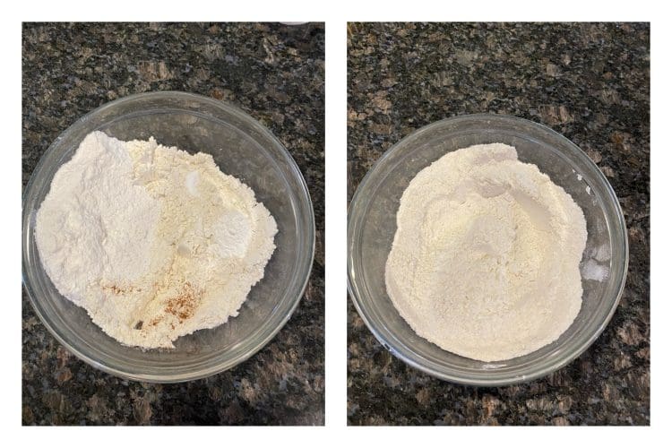 Mix together flour, baking powder, baking soda, salt, and warm spices like cinnamon and nutmeg. - Combine Wet and Dry Ingredients