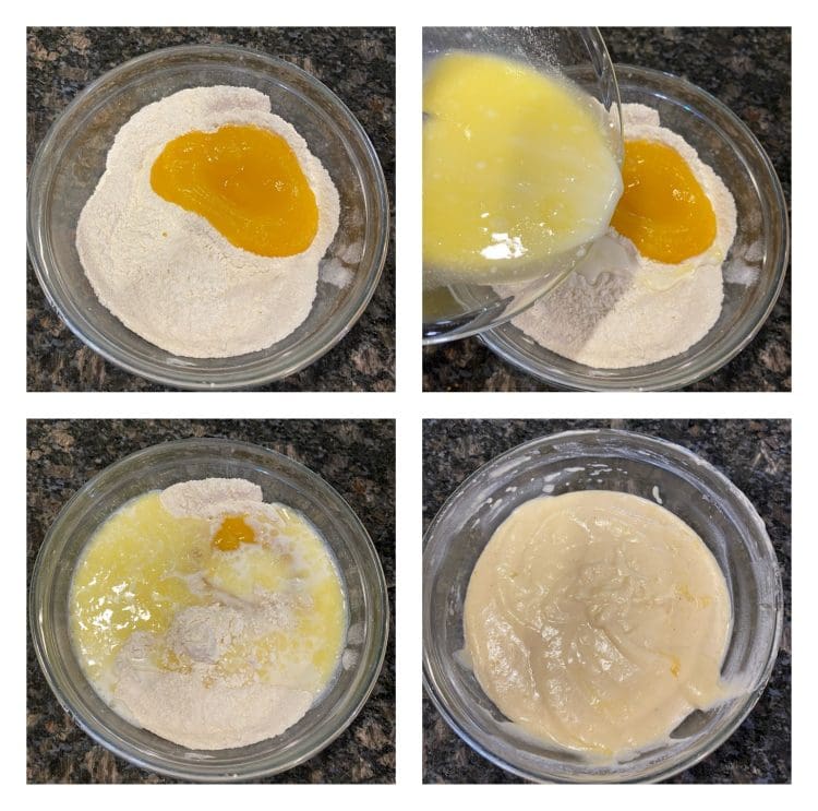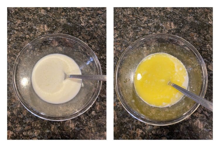Combine milk with vinegar to make buttermilk. Let it rest for 15 to 20 minutes. After 15 to 20 minutes to the buttermilk (curdled milk) then whisk it with melted butter or oil. - Sift the Dry Ingredients